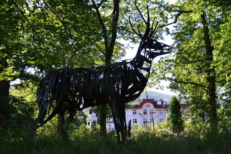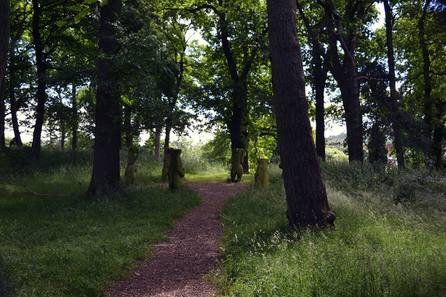 Features: Romantic folly on rocky outcrop, raised terrace eating area, pebble mosaic, garden lighting, sculpture trail.