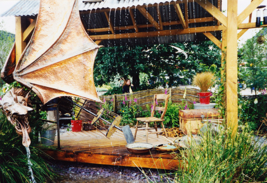 The Dragon Makers Yard was a garden for the future with reference to the past. Most of the planting and materials for the garden were representative of upland Wales where coppersmith Richard Taylor crafted the dragon. It included a lot of native spices with a few quirky additions. The theme of planting was one of self seeding to show natures continuity.